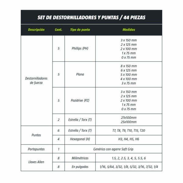 Todos los destornilladores vienen con agarre antideslizante premium soft-grip.
