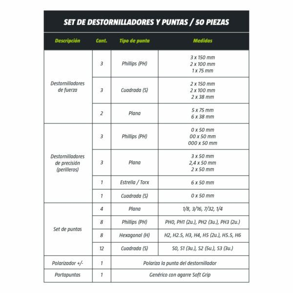 3 punta phillips (ph): 0x50mm – 00x50mm – 000x50mm.