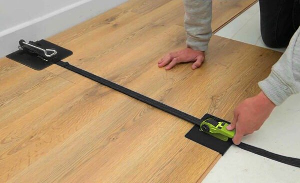 Instale fácilmente su piso flotante con ésta prensa con placas de 110 mm de ancho, borde doblado para una sujeción firme y mecanismo de cremallera de precisión.