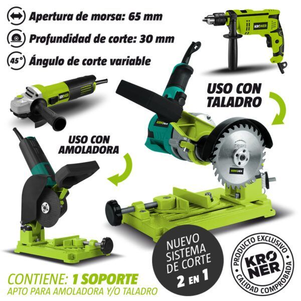 Incluye morsa para ajustar la pieza a cortar, con una apertura máxima de 6,5 cm.