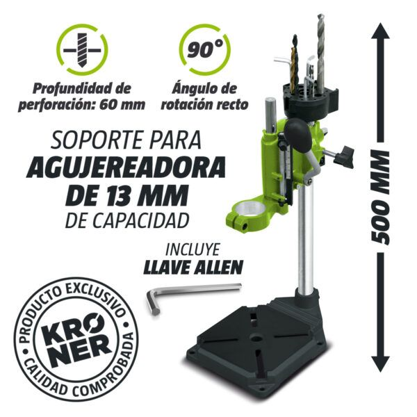 Soporte universal para taladro mandril hasta 13 mm y 50 mm con rotación.